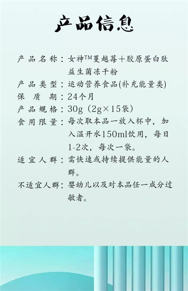【蔓越莓+胶原蛋白】女神益生菌冻干粉 30g(2g*15袋)